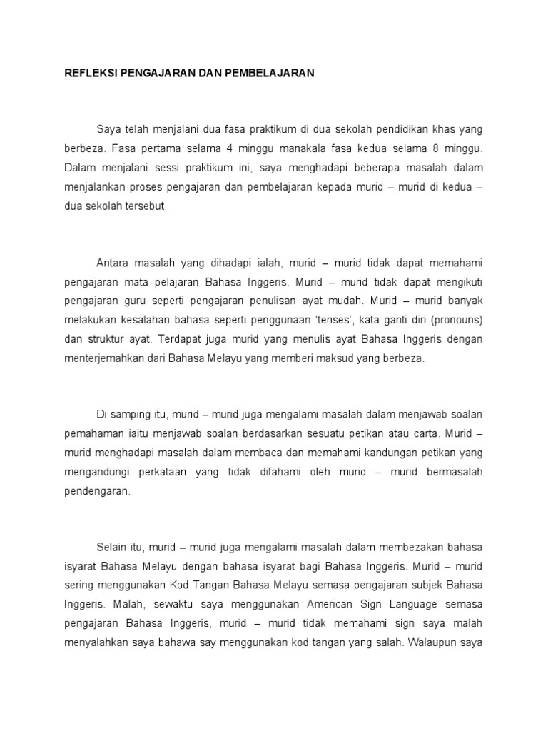Contoh Refleksi Pengajaran Dan Pembelajaran Bahasa Inggeris